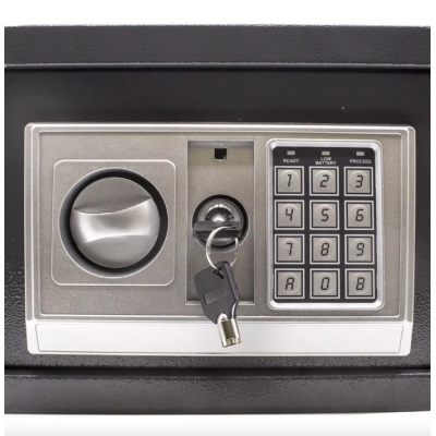 Ushbu raqamli elektron xavfsiz xavfsiz - bu kichik va o'rta ob'ektlarni, masalan, valyutalar, zargarlik buyumlari, muhim daftarlar va sentimokal qiymat ob'ektlarini saqlash uchun juda mos keladi. Antistanga qarshi rasm bilan chidamli po'latdan yasalgan, u chidamlilikni ta'minlaydi. Ochilish mahsulotga hamroh bo'lgan elektron parol yoki kalit orqali amalga oshirilishi mumkin. Uning orqa tomonida 2 ta teshikka, devorlarda yoki gorizontal yuzalarni mahkamlash uchun pastki qismida. U ko'chmas mulkka ega emas, balki quvvatga ega bo'lishi yoki o'rnatilishi kerak.