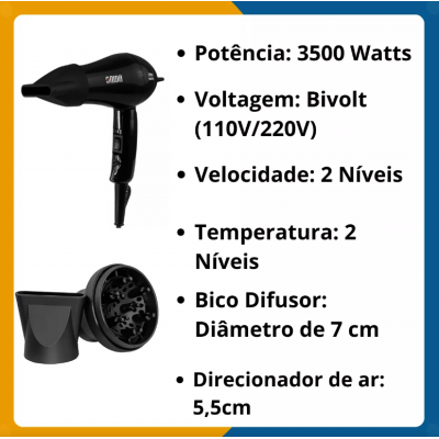 Sayohat Bivolt 3500w + diffuzer uchun mini sochli quritgich