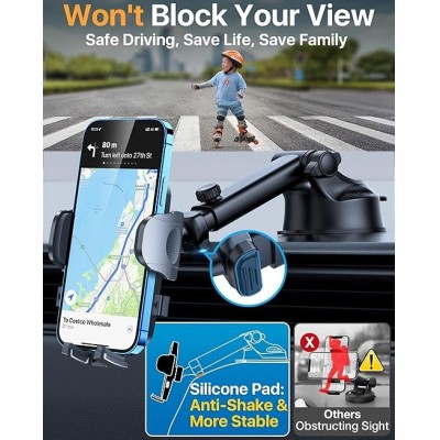 [Visão desobstruída] O suporte de telefone de carro atualizado Htu tem a junta esférica de 360 graus e o braço telescópico ajustável, para que o celular seja fácil de alcançar, navegação conveniente, atender chamadas. Não bloqueia sua visão enquanto dirige. Você pode se concentrar em dirigir, e o suporte de celular Htu fará o resto para você.